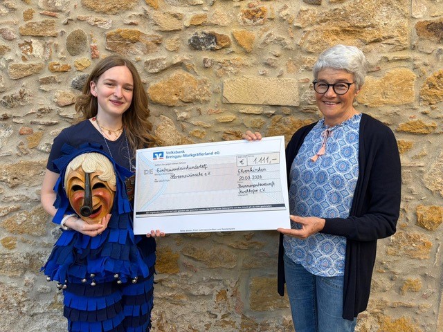 Die Brunnenputzerzunft Kirchhofen e.V. engagiert sich regelmäßig karitativ. In der zurückliegenden Session sammelten die Narren bei einem Zunftmeisterempfang, dem Hästrägertreffen, von den Gastzünften rund 900 Euro ein und rundeten die Spende für Herzenswünsche e.V. zur närrischen Summe von 1.111 Euro auf. Zunftschreiberin und Kassiererin Milena Steck übergab die Spende an Barbara Teichert.