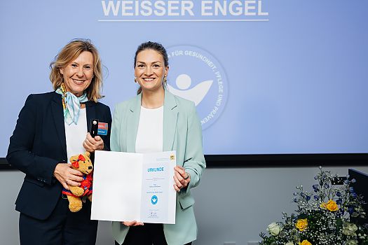 Pferdestammbuch-Zuchtleiterin Katrin Tosberg (l.) betonte bei der symbolischen Spendenübergabe an Herzenswünsche-Mitarbeiterin Beate Frase (r.): „Wir freuen uns, mit dieser Aktion schwerkranken Kindern ein Lächeln ins Gesicht zu zaubern."