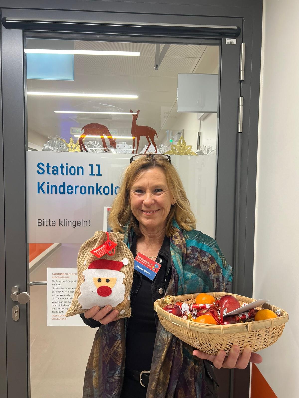 In der Schwabinger Kinderklinik war die Überraschung groß, als Herzenswünsche-Mitarbeiterin Sabine Bauer am Nikolaustag mit Süßigkeiten, nett verpackt in kleinen Säckchen, vor der Stationstür stand.