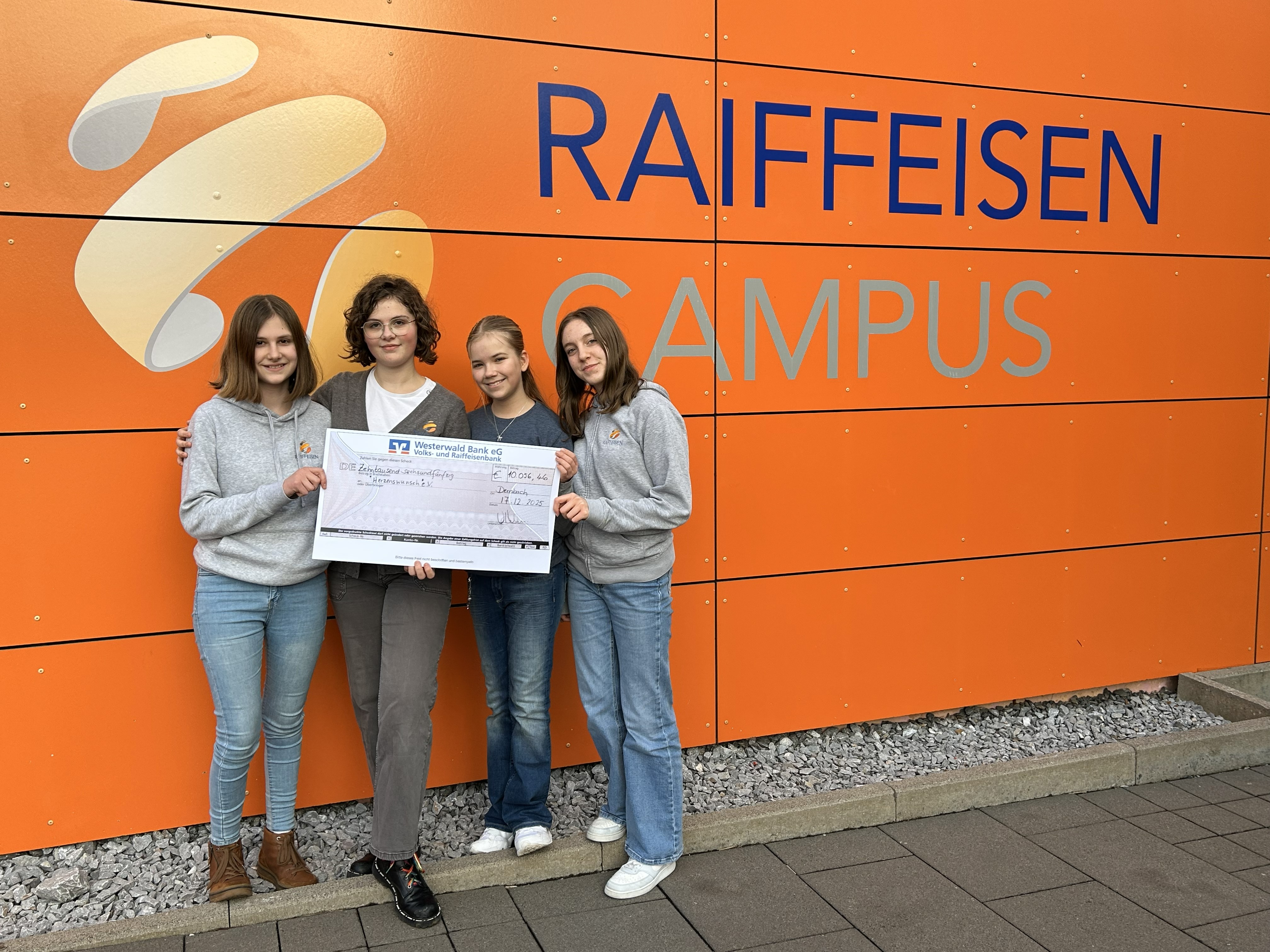 Die Schulgemeinschaft des Raiffeisen-Campus in Dernbach organisierte auch in diesem Jahr eine Spendenaktion. Wer die Spende in Höhe von 10.056,46 Euro erhalten sollte, darüber machten sich die Schülerinnen und Schüler der 8. Klasse Gedanken und entwickelten für die Entscheidung verschiedene Präsentationsfilme. Das Video über Herzenswünsche e.V. überzeugte.
