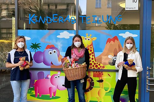 Die Herzenswünsche-Mitarbeiterinnen Lena (re) und Sabine brachten der Station 10k der Schwabinger Kinderklinik im "Auftrag des Osterhasen" ein paar ...
