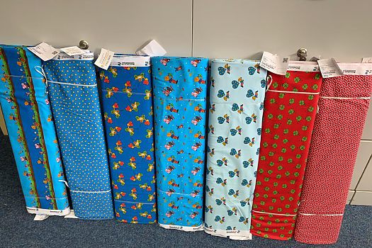 Unzählige Meter der wunderschönen Herzenswünsche-Stoffe warten darauf, von ehrenamtlichen Näherinnen zu Kissen, Schürzen, wattierten Kuschel- ...