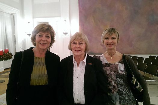 Ein wunderbares Wiedersehen beim Neujahrsempfang des Bundespräsidenten im Schloss Bellevue: Gundula Schmid, Antje Vogel und Wera Röttgering von ...