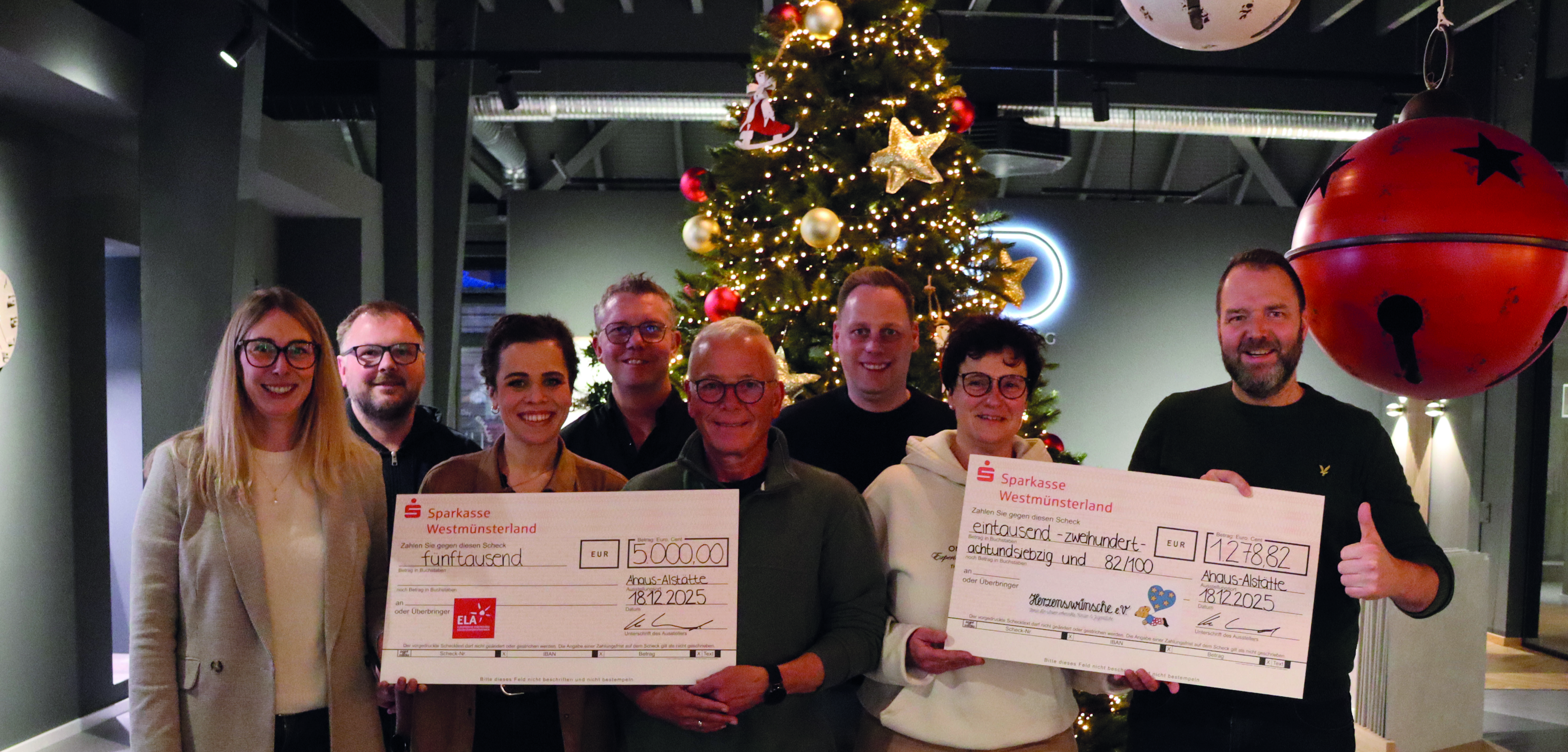 Ein festlicher Tag mit großer Wirkung: Beim diesjährigen Ulländer Weihnachtszauber, der traditionell am zweiten Advent in der Badausstellung der Ulland GmbH stattfindet, kam eine Spendensumme von 6.278,82 Euro für den guten Zweck zusammen. Ein Großteil der Spende ging – auf Wunsche von Herzenswünsche e V. – an ELA Deutschland, die Europäische Vereinigung gegen Leukodystrophien.