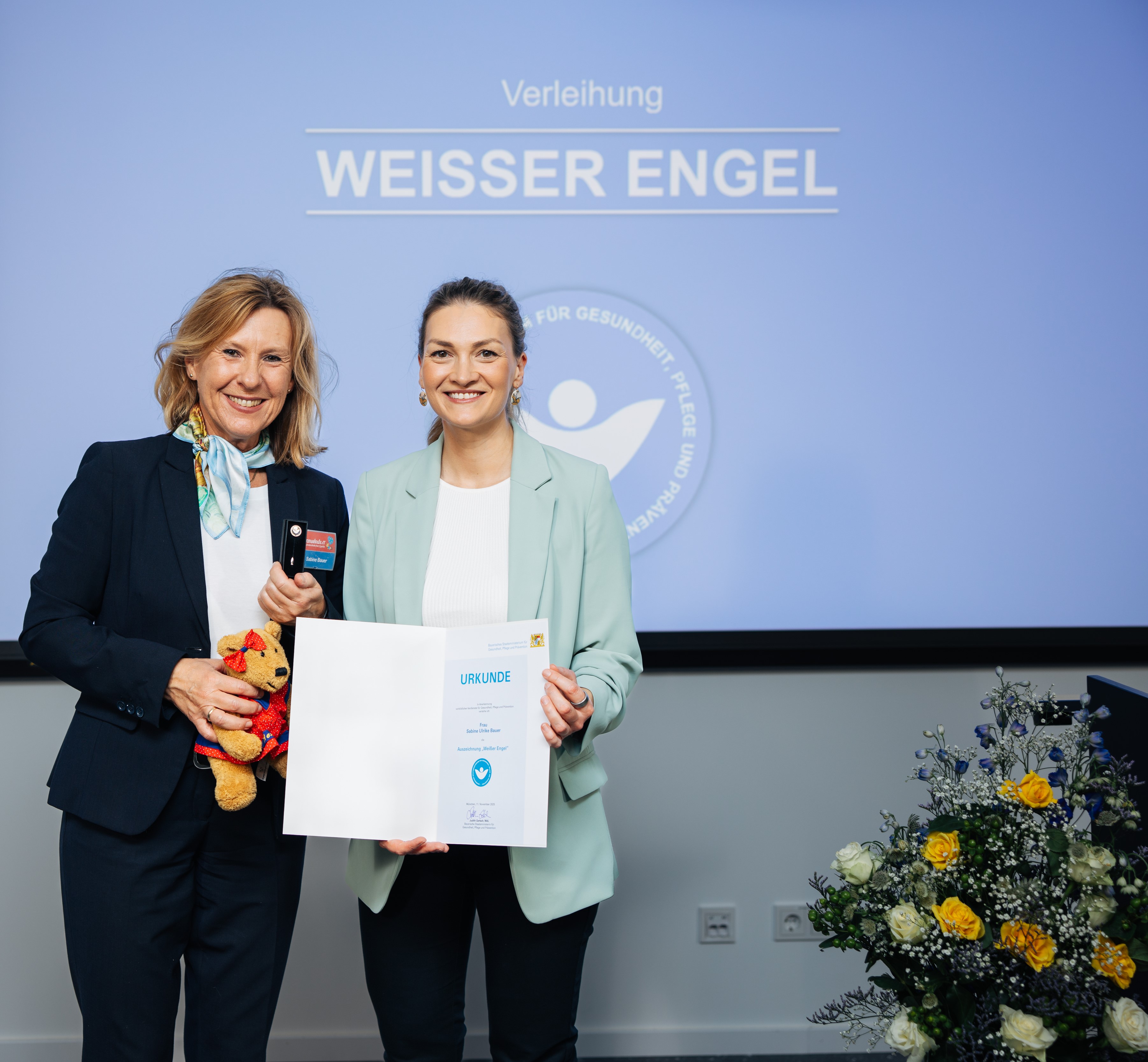Sabine Bauer ist seit über zwei Jahrzehnten Mitglied im Verein Herzenswünsche und hat in dieser Zeit unzählige Wunscherfüllungen realisiert. Sie betreut vor allem schwer erkrankte Kinder und Jugendliche in Kliniken in München und in Regensburg. Jetzt wurde die 56-Jährige aus Gerolsbach für ihr ehrenamtliches Engagement vom Bayerischen Staatsministerium für Gesundheit, Pflege und Prävention mit dem „Weißen Engel“ ausgezeichnet. Bayerns Gesundheits- und Pflegeministerin Judith Gerlach überreichte Urkunde und Ehrennadel.
