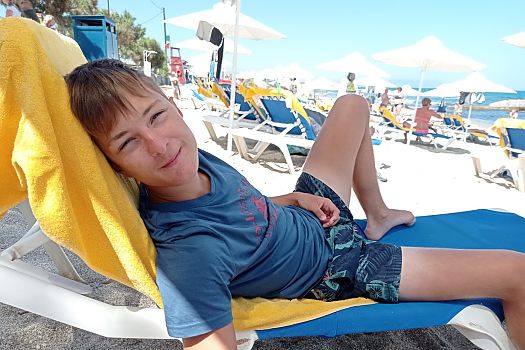 Ben verbrachte mit seiner Mutter herrliche Tage auf Kreta: Am Strand chillen, im azurblauen Meer baden, auf dem Banana Boot durch die Welle rasen, ...