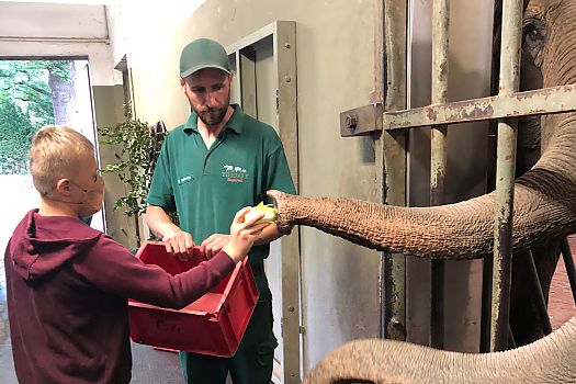 Fabio liebt Tiere und er kann richtig zupacken. In Tierpark Hagenbeck unterstützte er die Tierpfleger tatkräftig, fütterte mit ihnen die Elefanten ...
