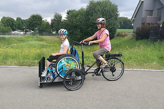 Was für eine tolle Konstruktion: Jana-Marie und ihre Oma freuen sich über das neue Spezialfahrrad, mit dem die beiden nun viel mobiler sind. Jetzt ...