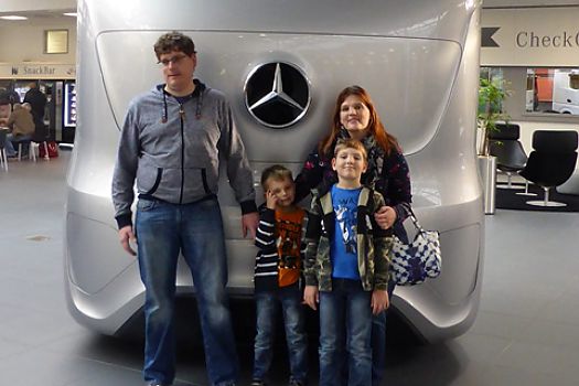 Amaury ist ein LKW-Fan. Er begeistert sich für die richtig großen Trucks. Mit seiner Familie besuchte er das Mercedes-Benz-Werk Wörth. Das ist ein ...