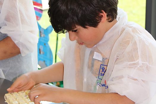 Gebannt verfolgten 32 Augenpaare den kleinen Spielzeuglastwagen, der in einem großen Glaskasten unterwegs war und eine Mini-Schoko-Tafel geladen ...