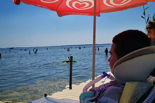 Niklas ist gerne am Strand. Und so wollte er so nah wie möglich am Wasser sitzen, um das Meer und die Wellen zu beobachten. Seine Familie hält fest ...