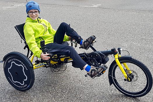 Jetzt geht es los, jetzt ist er wieder richtig mobil: Sebastian freut sich über sein neues Liegefahrrad.