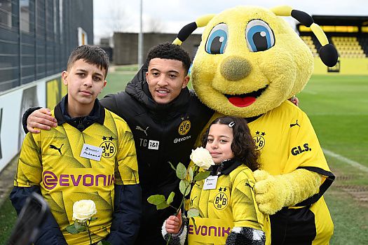 Mohamad besuchte seinen Lieblingsspieler Jadon Sancho beim Training des BVB im Signal Iduna Park (und nahm als toller Bruder auch seine kleine ...