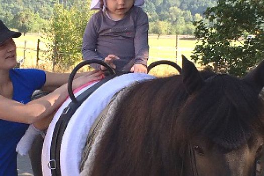 Wenn Svea das sanfte Schaukeln und die rythmischen Bewegungen auf „ihrem" Therapiepferd Blazy spürt, beginnt sie zu lächeln, weil es ihr gefällt ...