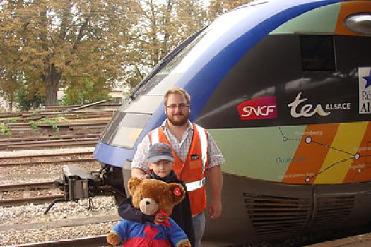Patrick ist Eisenbahn-Fan und sein größter Wunsch war es, einmal im Lokführerstand mit dem deutsch-französischen Regionalzug „Blauwal" ...