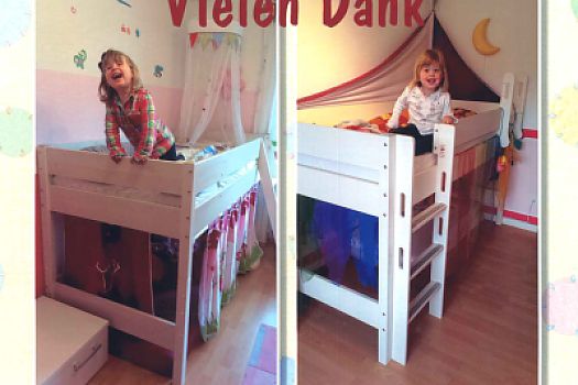 Für die zwei Hochbetten bedankte sich sich Malinas Mutter mit diesem schönen Foto und folgenden Zeilen: "Vielen, vielen Dank für die beiden ...