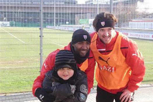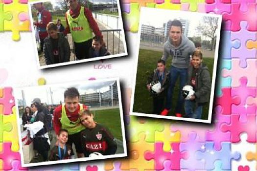 Gioele erlebte ein buntes VfB-Puzzle - als sich Spieler um Spieler nach dem Training um ihn scharten. Hautnah mit den Profis - ein Herzenswunsch ging ...