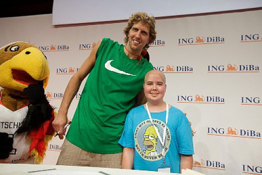 10.000 Fans umjubelten Dirk Nowitzki bei seinem Auftritt am 28. Juni in Würzburg. Thomas durfte an diesem Tag seinem Idol ganz nahe kommen, ...