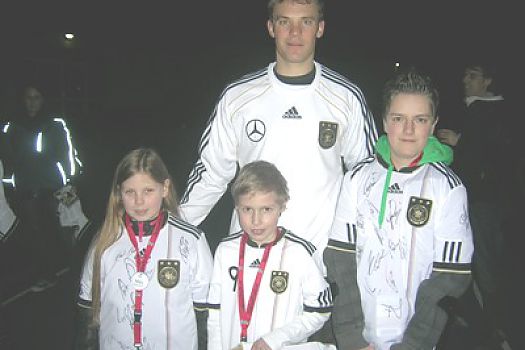 Dominic, Maja und Marius besuchten die Fußball-Nationalmannschaft beim Spiel gegen Italien in Dortmund. Ihr Lieblingsspieler Manuel Neuer wie auch ...