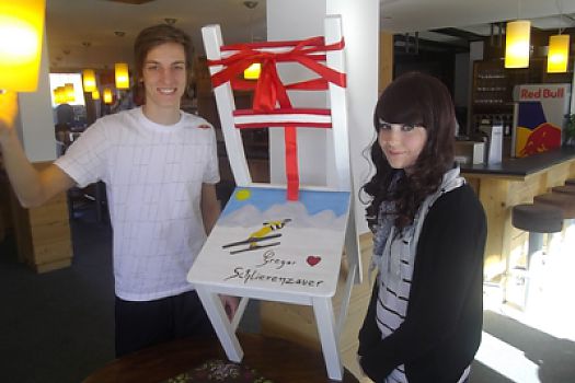 Kathrin bedankte sich beim österreichischen Skisprungweltmeister Gregor Schlierenzauer mit einem von ihr bemalten Stuhl für die einfühlsame ...