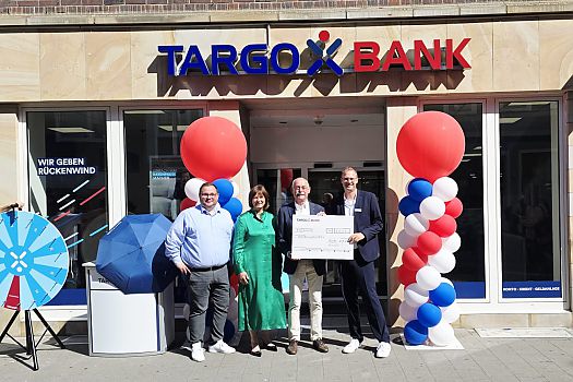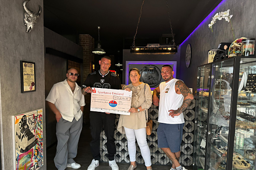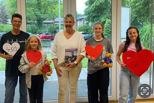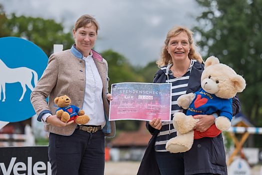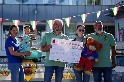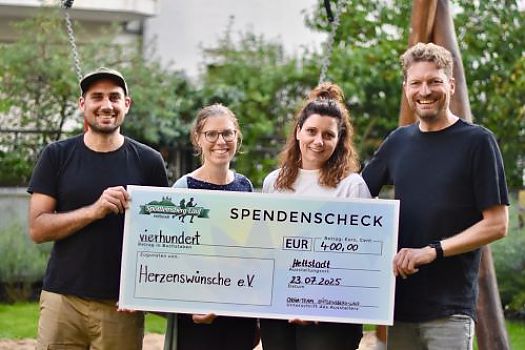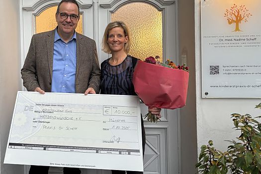 Foto: Rainer Hovemann vom Team "Lastenrad statt Tankrabatt“ übergab Herzenswünsche-Mitarbeiterin Beate Frase eine Spende von 1.500 Euro. Das Team fuhr in den 24 Stunden 119 Runden.
