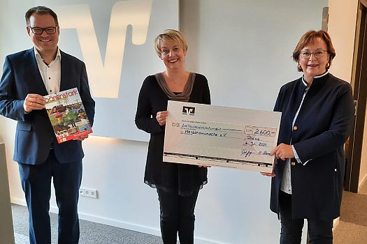 Oliver Schräder und Ruth Wissing-Stegemann übergaben stellvertretend für das Betriebsratsgremium eine 2.600 Euro-Spende der 500 Mitarbeiter der ...