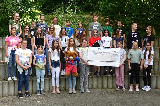 Frieda, Lisa und Carlotta (v.l.) freuten sich mit Isabell Ochtrup, Maren Berghaus und Pia Hangmann über die tolle Spende in Höhe von 1.111,11 Euro, ...