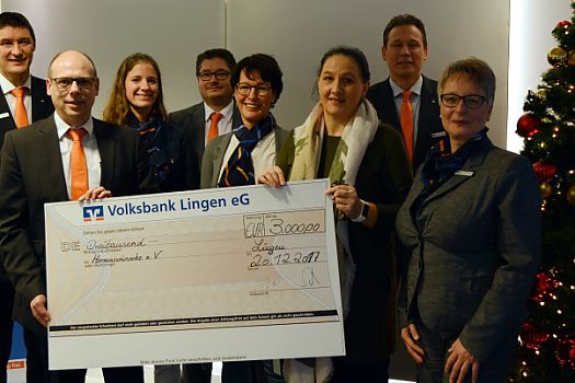 Sie verzichteten auf ein Weihnachtspräsent und sammelten, um „Kinder zum Lächeln zu bringen“ - die Mitarbeiter der Volksbank Lingen spendeten 3 ...