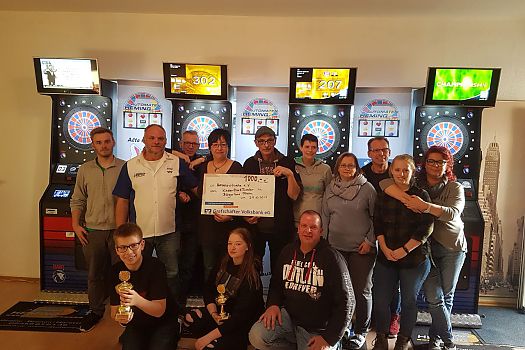 Beim ersten Kinder-Dart-Turnier ließen 28 Kinder die Pfeile im Bürgerhaus Rheine fliegen. Die Tombola und weitere Spenden brachten 1 000 Euro ein.