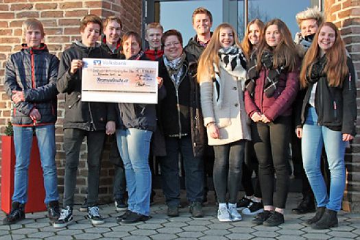 Auszubildende überreichen Spendenscheck