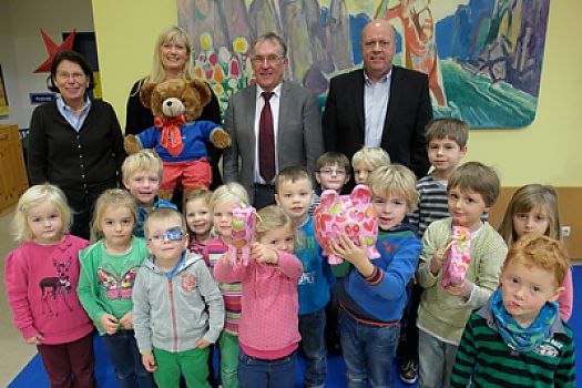 Unter dem Motto "Kinder helfen Kindern" bastelten die Kinder des St. Christophorus Kindergartens anlässlich des 400. Ferkelmarktes in Hagen 200 ...