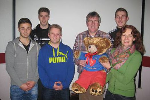 Die Trainer und Jugendlichen des SC Westfalia Kinderhaus spendeten die Erlöse aus den Eintrittsgeldern des Kreispokalendspieles gegen SC Münster 08 ...