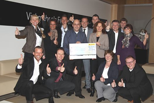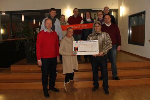Hocherfreut nahm Sportchef Gerd Häcke den Scheck über 1000,00 € von Geschäftsführerin Stephanie Eickelmann entgegen. Mitarbeiter und Gäste des ...
