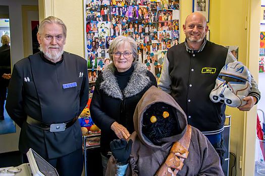 Das war mehr als beeindruckend: In voller Montur besuchten Michael Heinrich als Imperialer Offizier, Sven Kramer als Scout Trooper und Nils ...